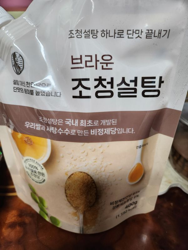 건강한 설탕이라 구입했어요!! 맛은 살짝 조청맛이 나는거 같기도 하고...
