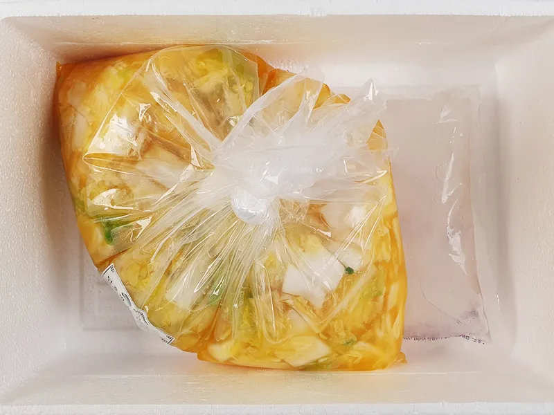 수령 후 김치 전용 용기나 플라스틱, 유리 용기에 옮겨 냉장 보관해 주세요