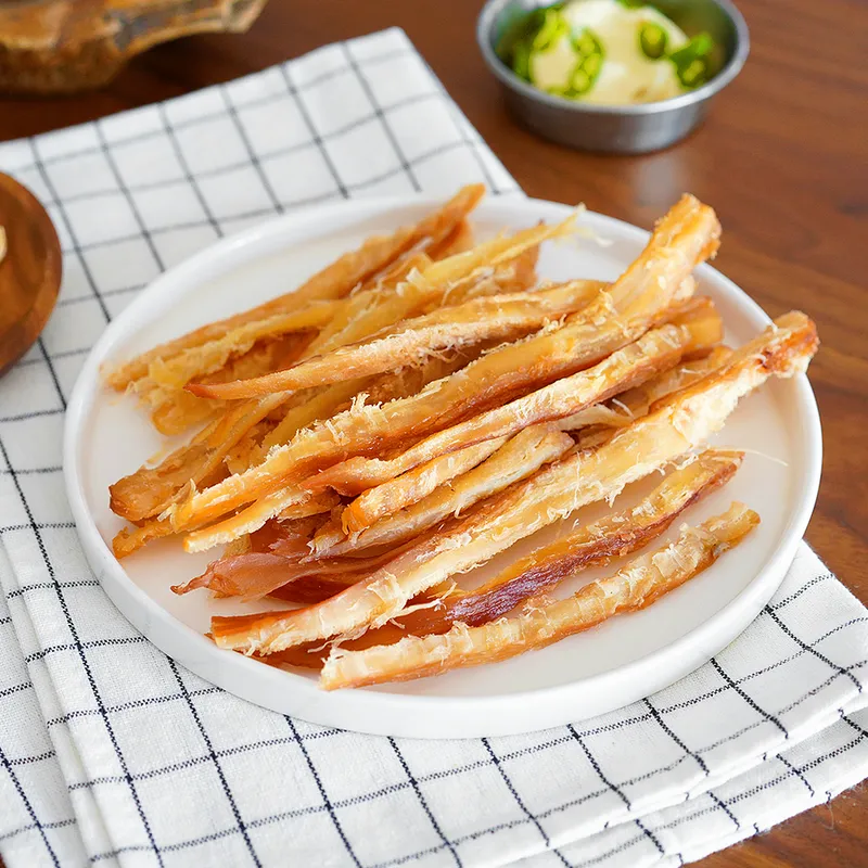 페스츄리 오징어는 가늘게 찢은 오징어 살을 겹겹이 쌓아올려 만듭니다. 두툼하면서도 촉촉하면서도 말랑한 식감이 일품! 결이 하나하나 살아 있어 결대로 찢어 드시면 버터오징어 특유의 쫄깃함을 제대로 맛보실 수 있습니다.