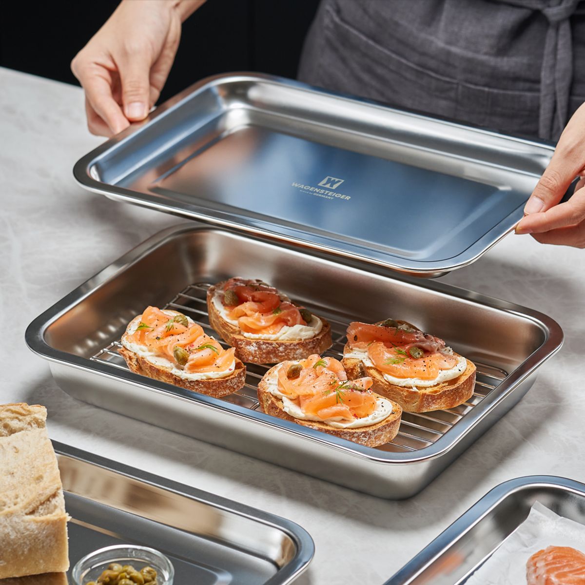 독일 감성의 사각 스텐 트레이 세트(밧드+렉+트레이 구성)