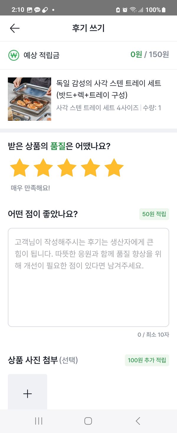 옵션: 사각 스텐 트레이 세트 1사이즈