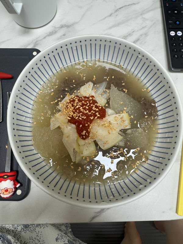 집에서 냉면을 해먹다니 그것도 물냉면 너무 맛있는데 무가 터져왔내요 모든것에 식초냄새가나서 짜증이 났습니다 맛은 좋아요