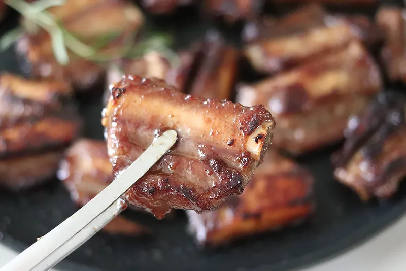 달콤 짭조롬한 양념이 예술인 한입쪽갈비입니다! 뼈에 붙은 고기를 쏙 뜯어 드시면 그만한 밥반찬이 없습니다. 질기지 않고 야들야들 부드러운 식감이 아주 좋습니다.