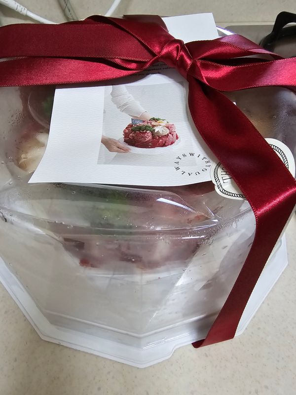한우케익으로는 처음받아보았는데 소고기 선호하지않았던 저는 마음 완전 달라지는 순간을 맛보았답니다ㆍ 핏믈꼼꼼히 제거해서 고기살로 정성스런 케익 구워먹기에 아깝지만 한우맛을 즐겨봅니다ㆍ 이 고기를 먹으면서 부드럽고 식감좋고 정말 잡내하나없이 깔끔한맛에 감동이였답니다ㆍ 굳이 아쉬운것은 고기를 잘 모르는 저는 고기부위품명이적힌 푯말이 꽂아쳤으면(장식느낌겸) 구우면서 이런맛이구나 느끼면서 더 맛있게 먹고 정성에도 감사드립니다ㆍ 사장님의 배려덕분에 저희가족 명절연휴에 최상의 고기 맛보며 가족사랑돈독한시간이였답니다ㆍ