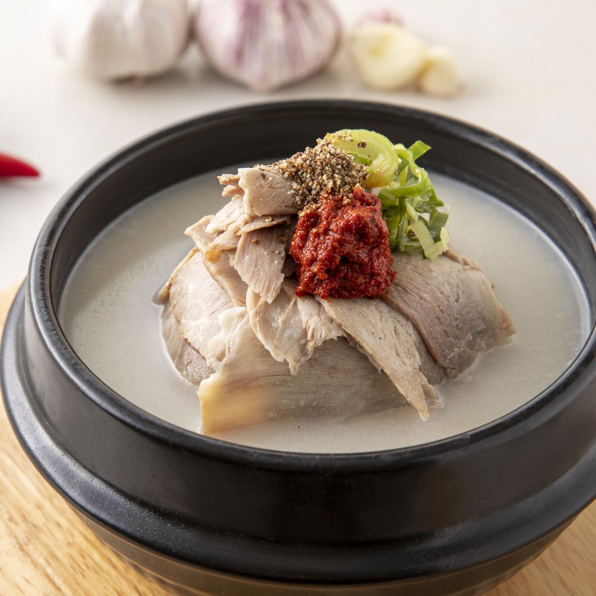 첫 입을 떴을 때 무조건 잡내가 없어야 정말 잘 만든 돼지국밥이라 하는데요. 잡내를 유발할 수 있는 모든 요소를 배제하고 깔끔하게 만든 돼지국밥입니다.