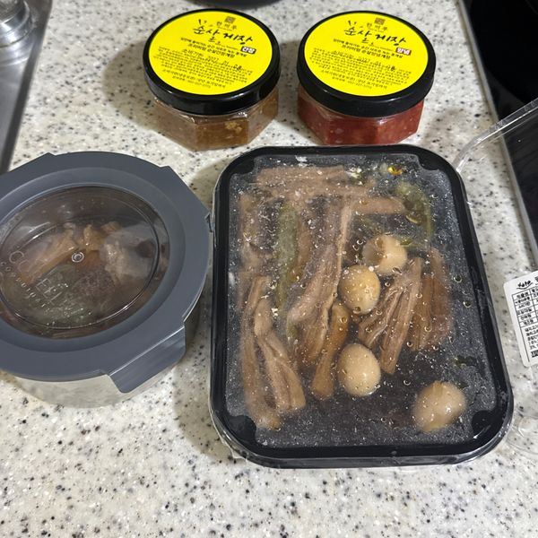 인천 게장집서시키다 이번엔 팔도감으로 양념이랑 간장으로만 시켜봤는데 아이들 밥비벼먹고 김에 싸먹기딱이네요.입맛없을때 간단하게 아침이나 학원가기전 먹이기 좋아요