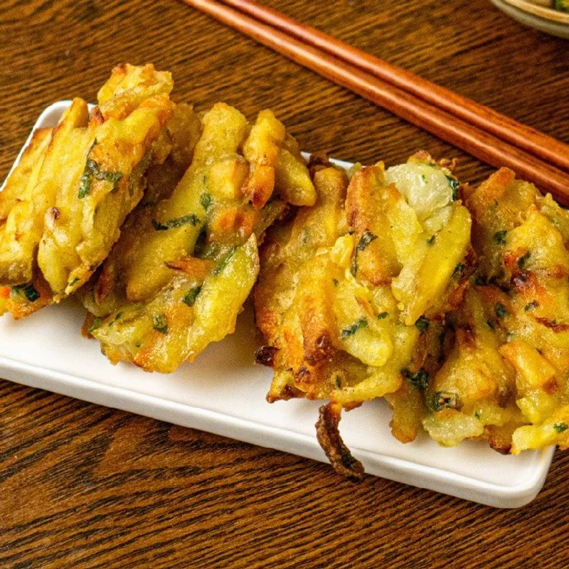 바삭바삭한 튀김옷을 입힌 고구마와 야채는 한 입 베어 물면 겉은 바삭하고 속은 부드럽고 달콤한 맛이 입안 가득 퍼져요. 원물 자체의 자연스러운 단맛이 살아있어 아이들부터 어른까지 모두가 좋아하는 달콤한 간식이에요.