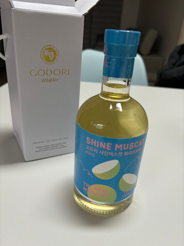 샤인머스캣 와인 이라고해서 무슨맛일까하고 구입해봤어요. 와인의 떫은 맛을 좋아하지않아서 달콤한맛이라고 해서 먹어보니 첫맛은 달콤하면서 끝맛은 깔끔하고 가볍게 먹기좋아요. 고기랑 먹기딱좋아요.기름맛을 입안에서 없애주네요.~~한가지 아쉬운점은 병이길어서 냉장고 옆칸에 세워지지않아 (1센티만 작으면 딱일텐데요.) 비스듬히 세워야해서 불편하고 먹더거 눕혀서 보관하니 와인이 새네요. 뚜껑에 압이되는게 필요하겠어요.~우리 농산물로 만든 와인이라 입맛에는 딱이네요.추천합니다.