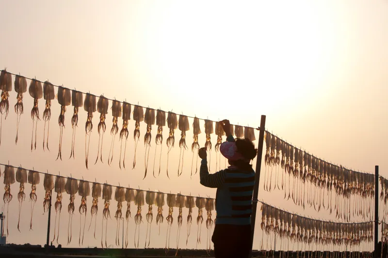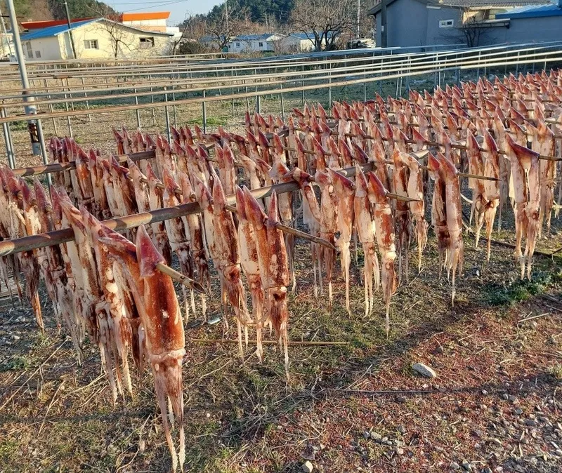 실제로 오징어를 말리는 모습을 꼭 확인하세요
