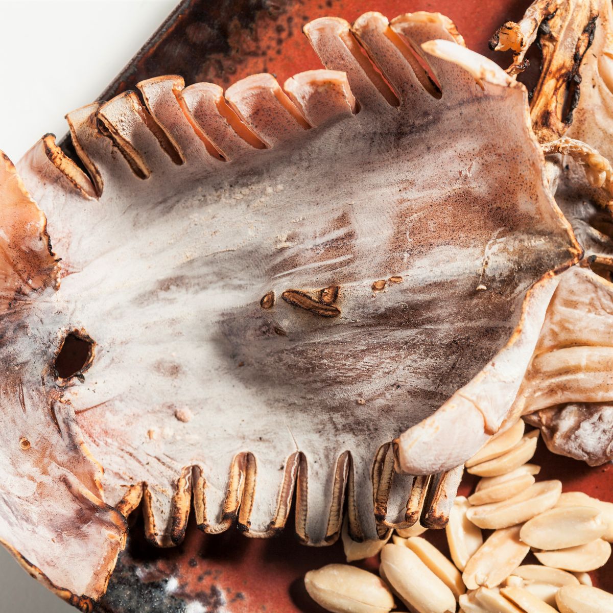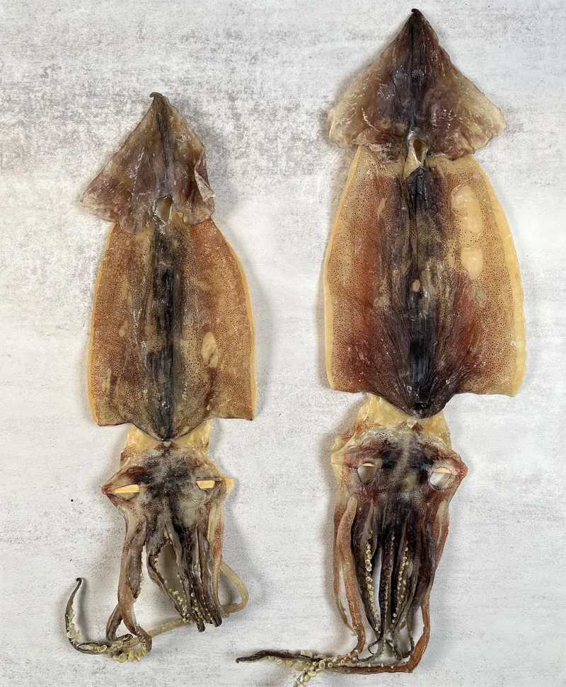 오징어가 신선할 수록 색이 진해져 갈색에 가깝게 됩니다. 일반적인 오징어 덕장의 오징어는 거의 흰 색인 것에 비해 진한 색을 확인하세요.