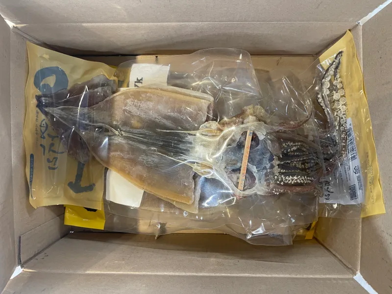 오징어를 비닐 포장 후 택배상자(종이)에 포장하여 발송 드립니다.