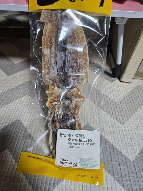 옵션: 대 마른오징어 3마리 (1.7kg/한축 기준)