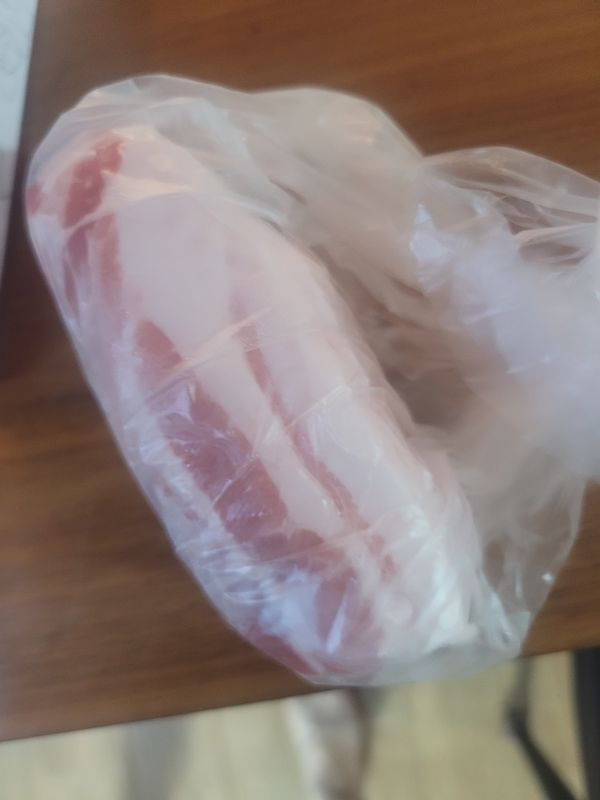 두껍게 썰어 낸 수육용 삼겹살입니다.