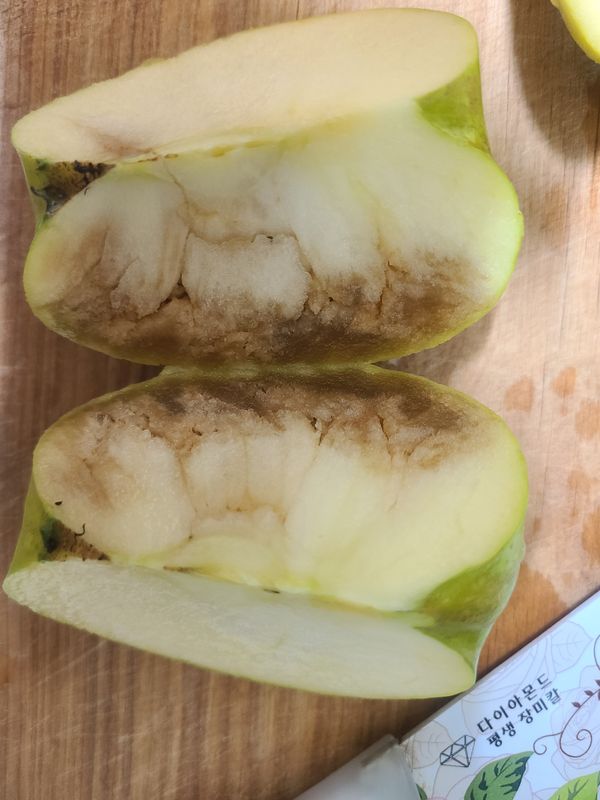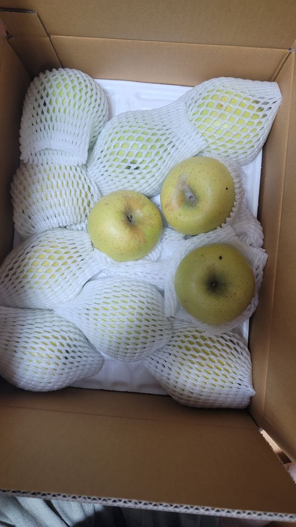 사과 크기도 적당히 크고 맛있어요 그런데 이번엔 배송중에 생긴건지 물러진 사과가 벌써 2개째네요 처음 하나는 살싹 멍이든 정도였는데 오늘 아침건 좀 심하네요