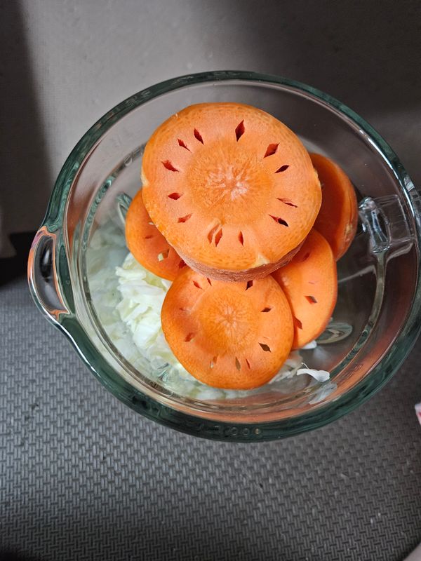 구성이 넘 좋아서 고민도 안 하고 바로 주문했어요. 싱싱한 야채 세가지가 같이 오니 넘 좋고 특히 당근이 아주 달고 맛있네요~ 야채 소비가 많지 않은 가족인데 이번에 작심하고 좀 먹어보려고요.^^ 당근과 양배추 비율이 바뀐 구성도 있으면 좋겠단 바램이 있습니다~^^ 많이 파세요❤️