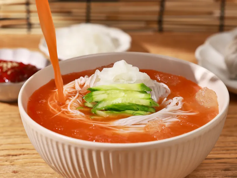* 육수와 살얼음이 반반 되었을 때 가장 맛있습니다.