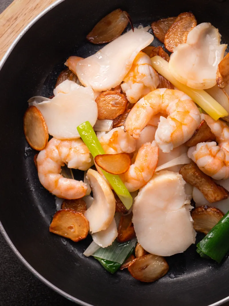 관자의 쫀쫀한 탄력과 새우의 탱글탱글한 식감, 입안에서 뽀득하게 터지는 질감이 어우러져 젓가락이 멈추지 않는 중독적인 맛을 완성해요. 파기름과 마늘향이 고소하게 감돌며 입맛을 확 끌어당기죠. 반찬은 물론 술안주로도 딱 좋아요.