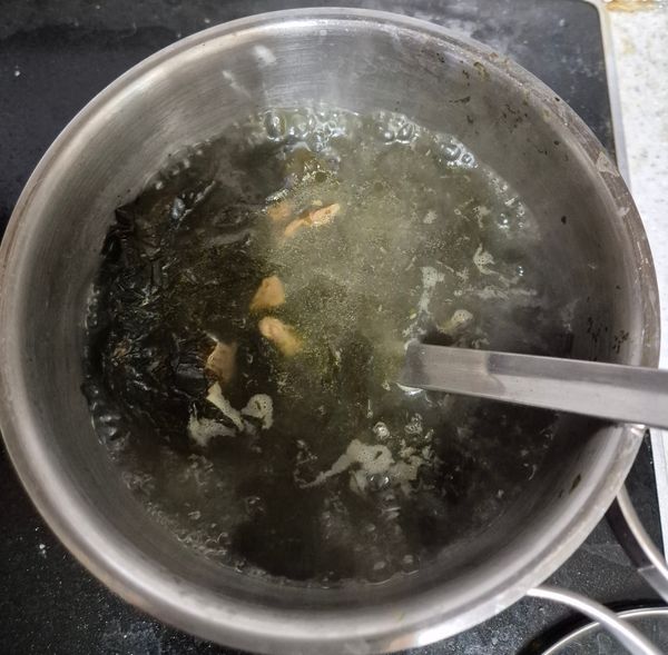 제 입엔 짜서 물 좀 넣고 끓였어요. 미역은 부드러웠어요.
