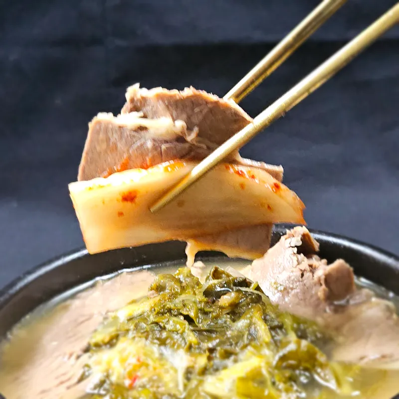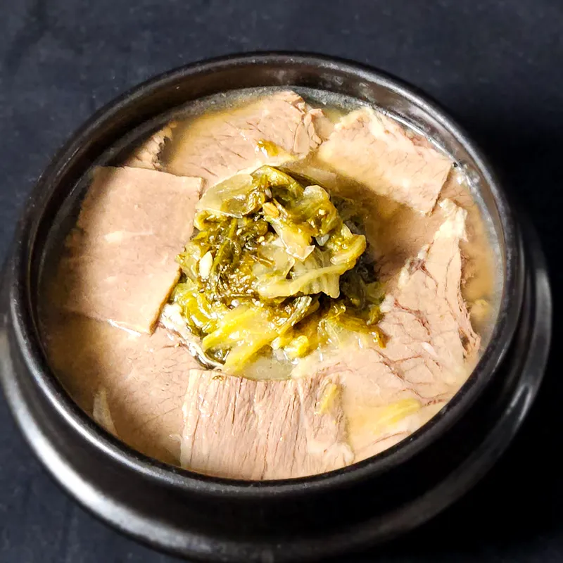 차돌양지 육수에 된장을 풀어 뭉근하게 끓인 후 우거지를 끓여 구수함이 일품인 해장국입니다. 액젓으로 감칠맛을 더해 깊은 맛과 깔끔함을 더했습니다. 해장이나 매운 음식을 못 먹는 아이들에게 찰떡입니다!