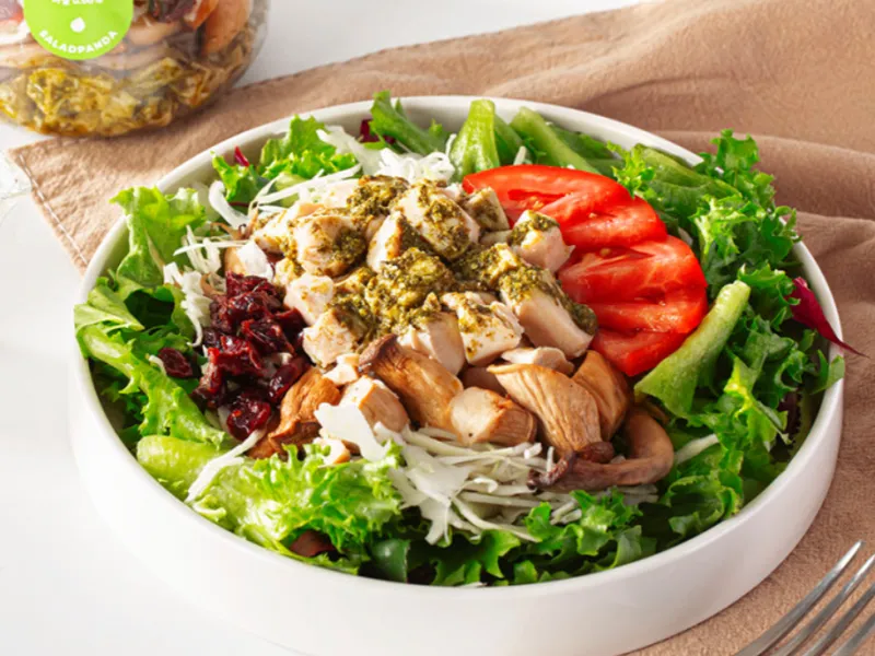 향긋한 바질 페스토에 버무린 닭가슴살이 들어가 영양만점 든든한 한 끼 완성입니다. 거기다 쫄깃한 느타리버섯과 새송이버섯까지! 맛과 건강을 모두 잡은 알찬 샐러드랍니다👍