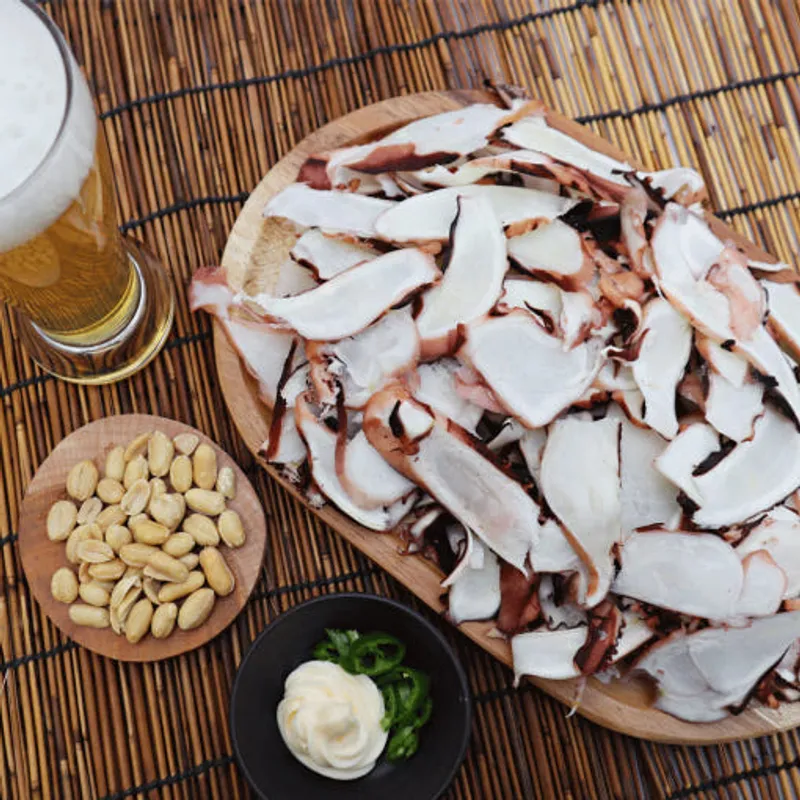 쫄깃하면서도 입안 가득 퍼지는 감칠맛! 질기지 않고 부드럽게 썰어낸 가문어 슬라이스입니다. 가문어 특유의 감칠맛과 쫀쫀한 식감이 시원한 맥주와 찰떡궁합을 자랑해요. 퇴근 후 간단한 안주로 제격입니다!