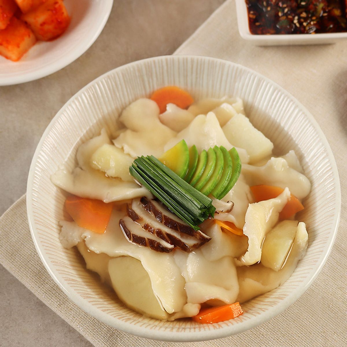 1인분씩 소포장으로 되어 있어, 부담없이 즐길 수 있어요. 취향에 따라 각종 야채나 해산물을 넣어 나만의 수제비를 만들어보세요.