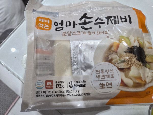 세번째 주문입니다. 요즘 식당을 가도 떼어먹는 수제비 반죽을 많이주는데 딱 그 반죽이에요. 쫄깃하고 얇게 펴지는..국물도 넘 맛나요..