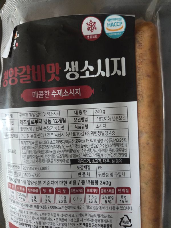 옵션: 생소시지(청양갈비맛) 240g*2팩