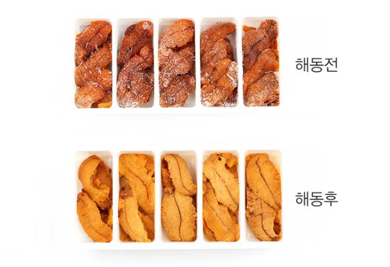 [보관 방법] 택배 수령 즉시 냉동 보관해 주세요. 냉동 성게알 해동은 냉장실에서 10시간 이상 서서히 차갑게 해동해 주세요. 해동 후 남은 성게알은 재 냉동하지 않는 것을 권장드립니다. [소비 기한] 수령 후 1~2일 내로 드시기를 추천드립니다.