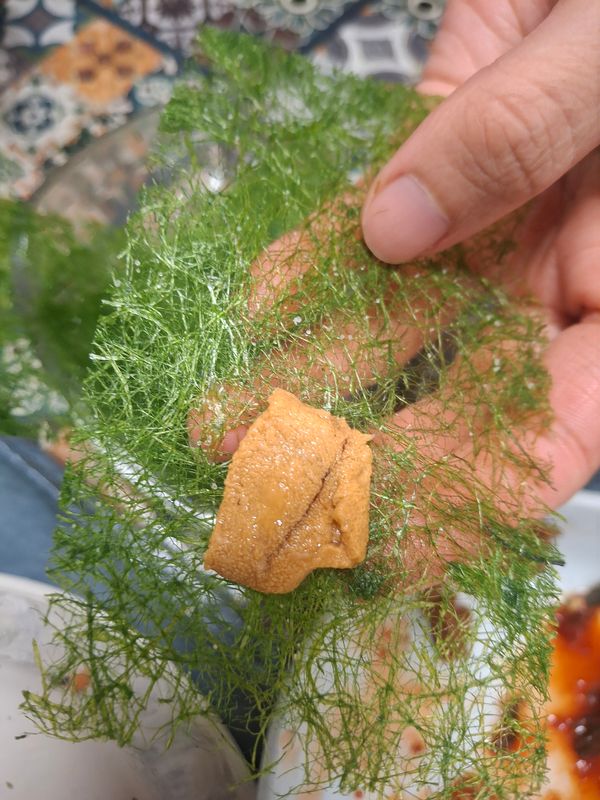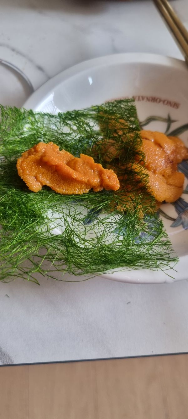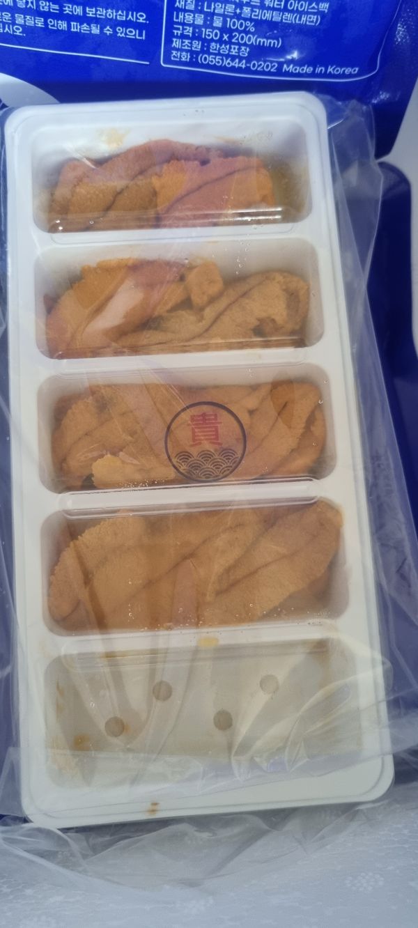 성게를 주문해보긴 첨입니다 그것도 페루산을... 국내 성게와는 맛이 다릅니다. 아주 약간의 크리미함을 느낄수있지만 그보단 이상한 약품 맛이 납니다. 아주 별로인 맛입니다 국내 성게와는 딴판이네요