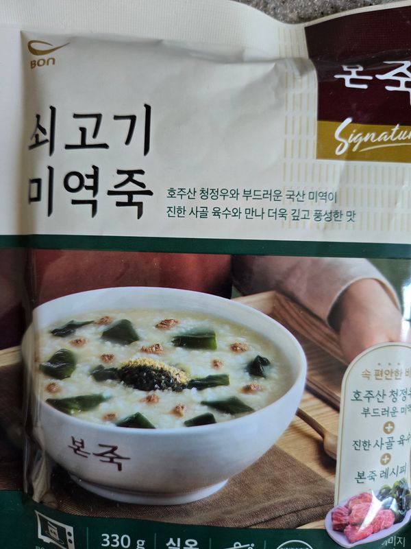 본죽의 시그니처 파우치죽 330g 쇠고기미역죽에 대한 상세이미지 입니다.