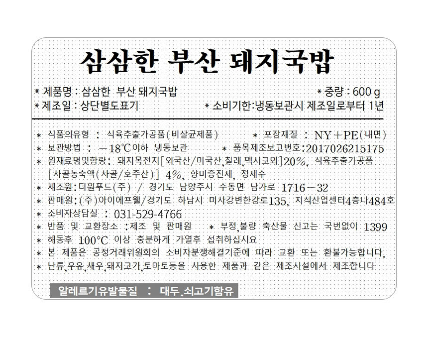 삼삼한 부산 돼지국밥600g*5팩총3kg