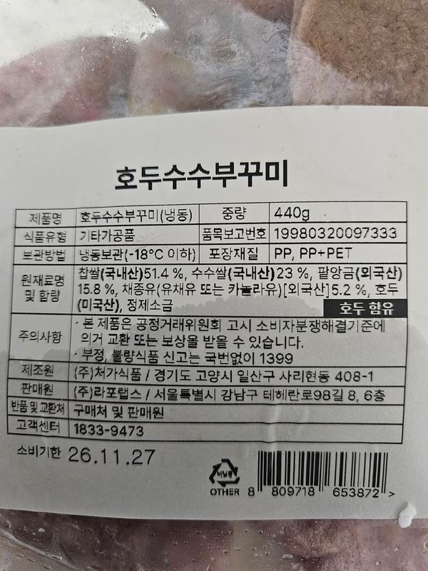 옵션: 호두 품은 수수부꾸미 440g*3팩