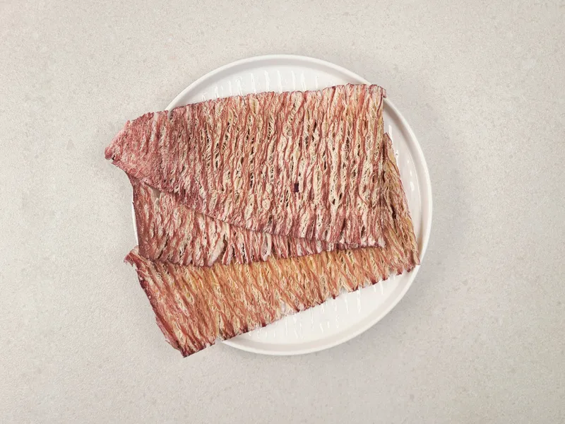 고온의 맥반석 위에서 정성껏 구워낸 오징어 맥반석 구이입니다. 청정 해역에서 잡은 오징어를 국내 위생 가공 시설에서 손질한 뒤, 전통 황토가마에서 구워냈어요. 기름에 튀기지 않고 직화의 열기로만 구워내어 쫄깃한 식감과 고소한 풍미가 살아있는 것이 특징이랍니다.