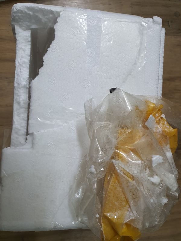 깨진 스티로폼 박스를 메우느라 덕지덕지 붙인 테잎 뜯느라 애먹었습니다.