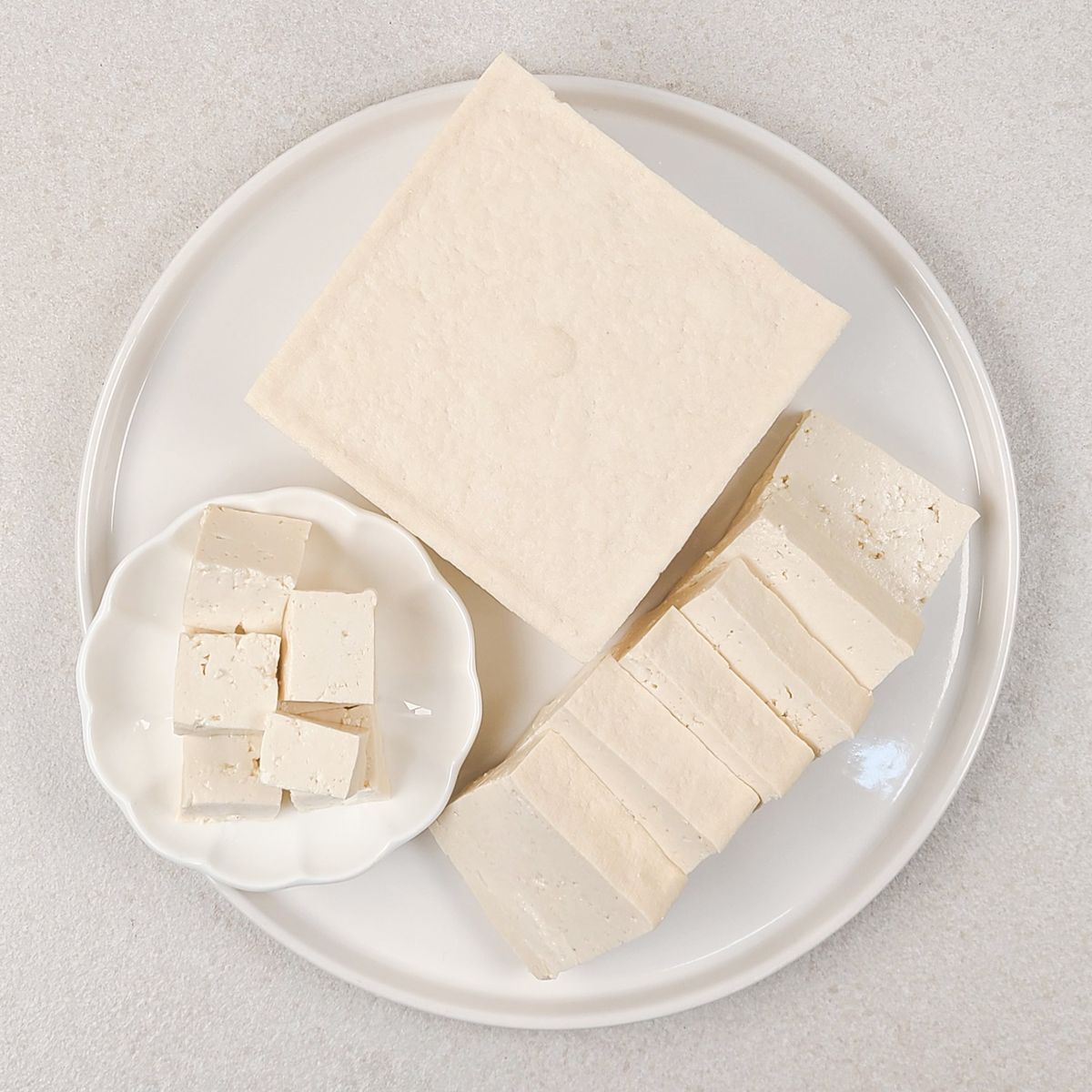 단단한 조직감으로 형태가 무너지지 않아 부침, 구이, 조림에 잘 어울리는 부침 두부입니다.