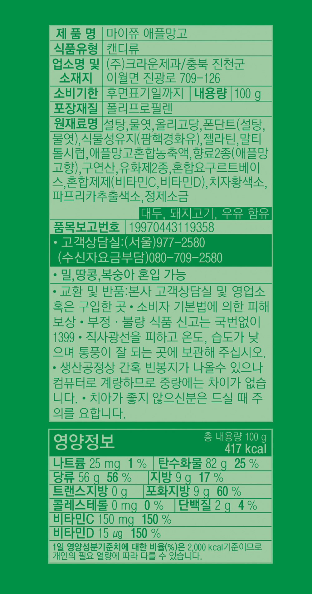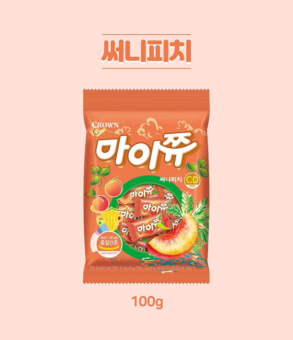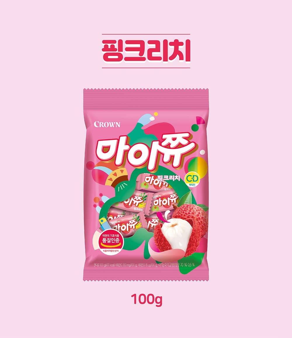 [G] 크라운 마이쮸 100g 4종 24봉 (핑크리치6+애플망고6+써니피치6+멜론6)
