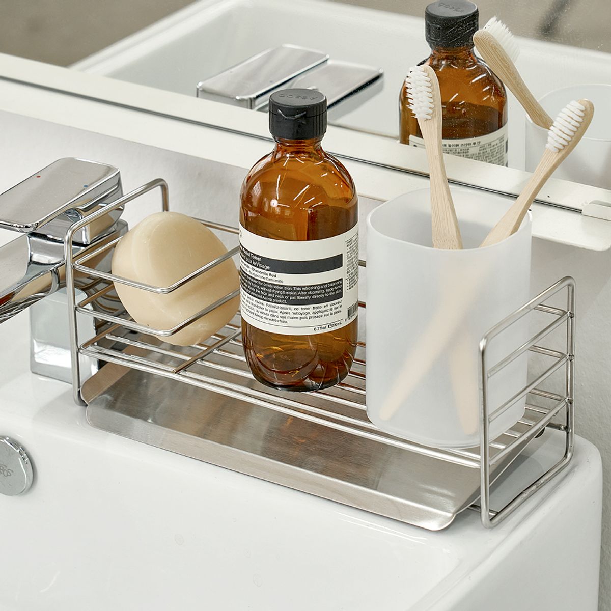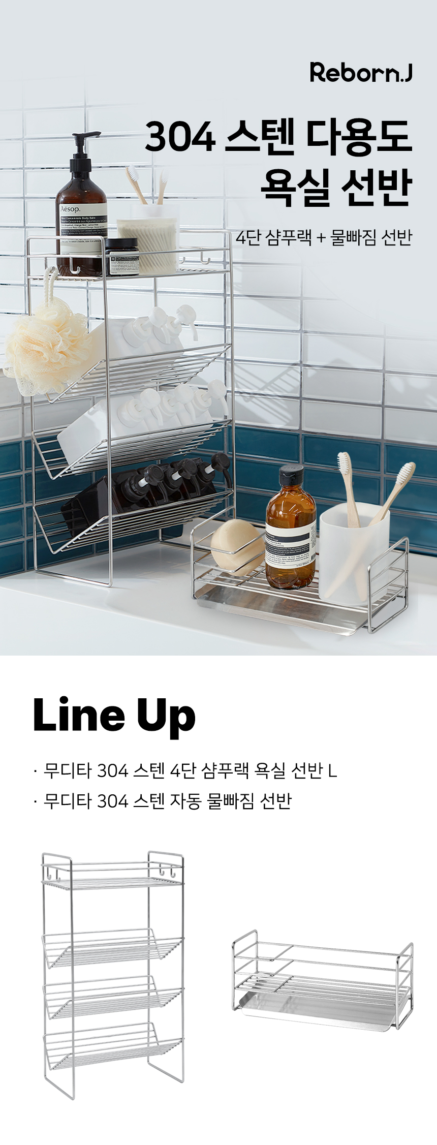 무디타 304 스텐 4단 샴푸랙 욕실 선반 L + 자동 물빠짐 선반