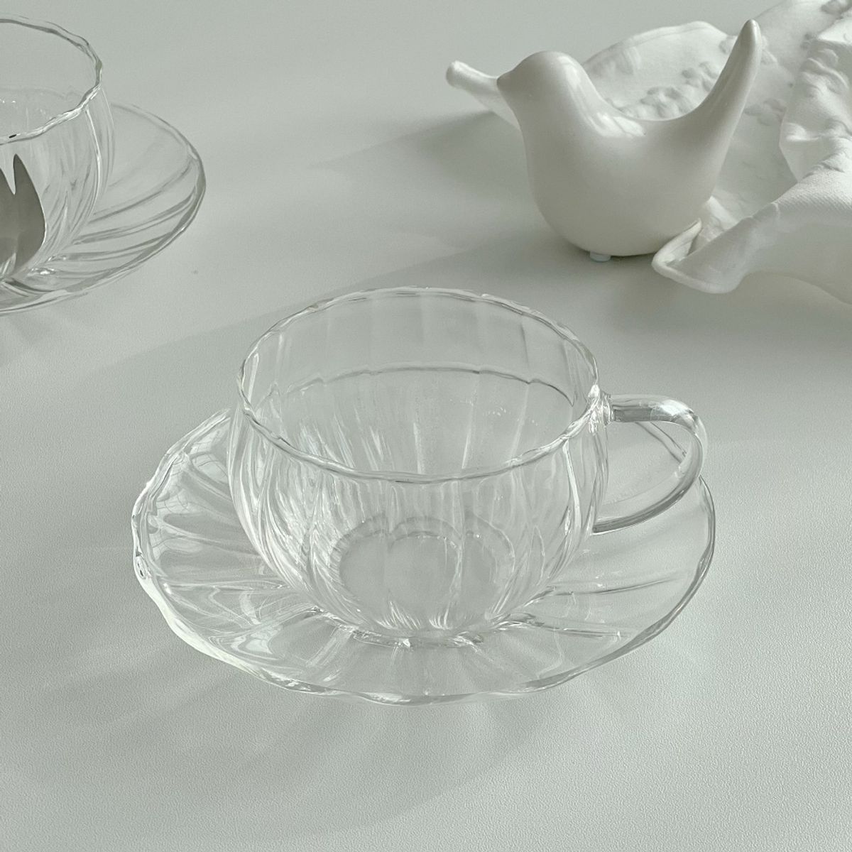 [1+1] [내열유리] 플리츠 찻잔 커피잔 세트