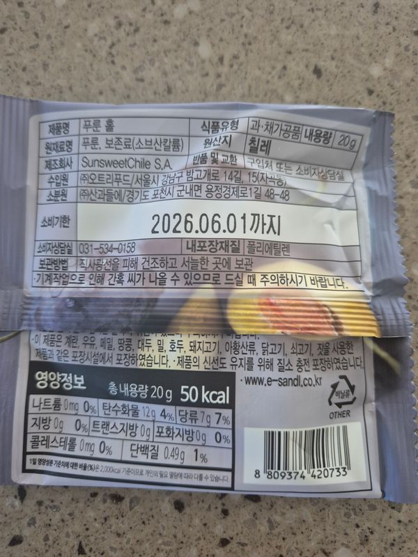 옵션: 하루건자두 20봉 박스