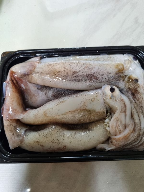 손질안된 싱싱한 통오징어에요-손질하기 귀찮지만 맛은 있을거같아요..사이즈는 작은 것 조금 큰거 섞여있지만 대체로 생각보다 작아요..맛있는 오징어볶음 하려고합니다~