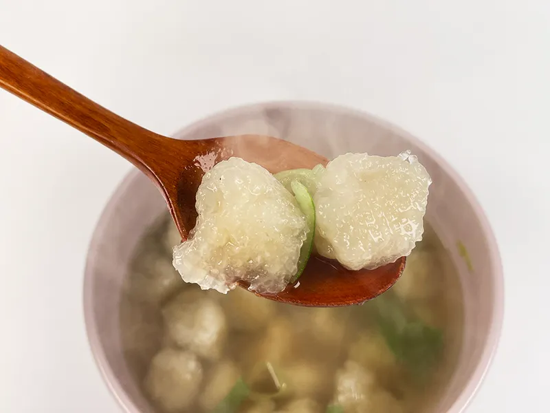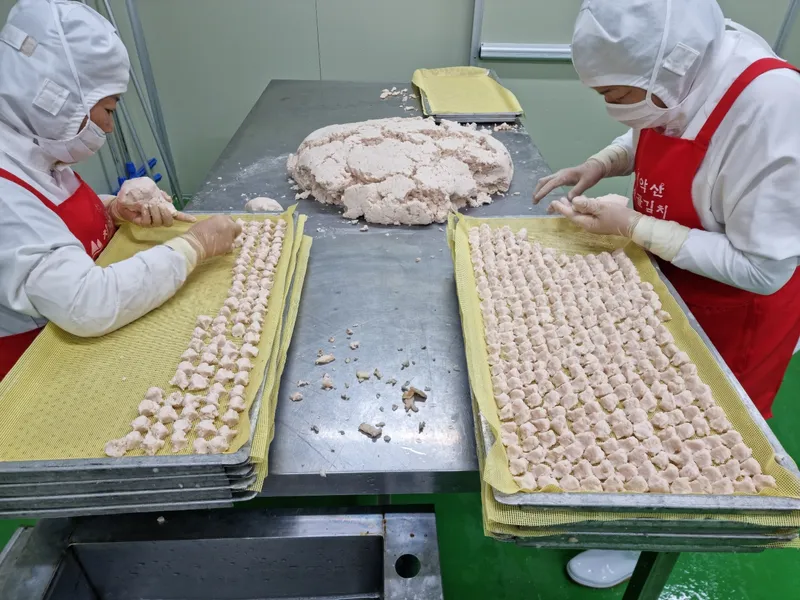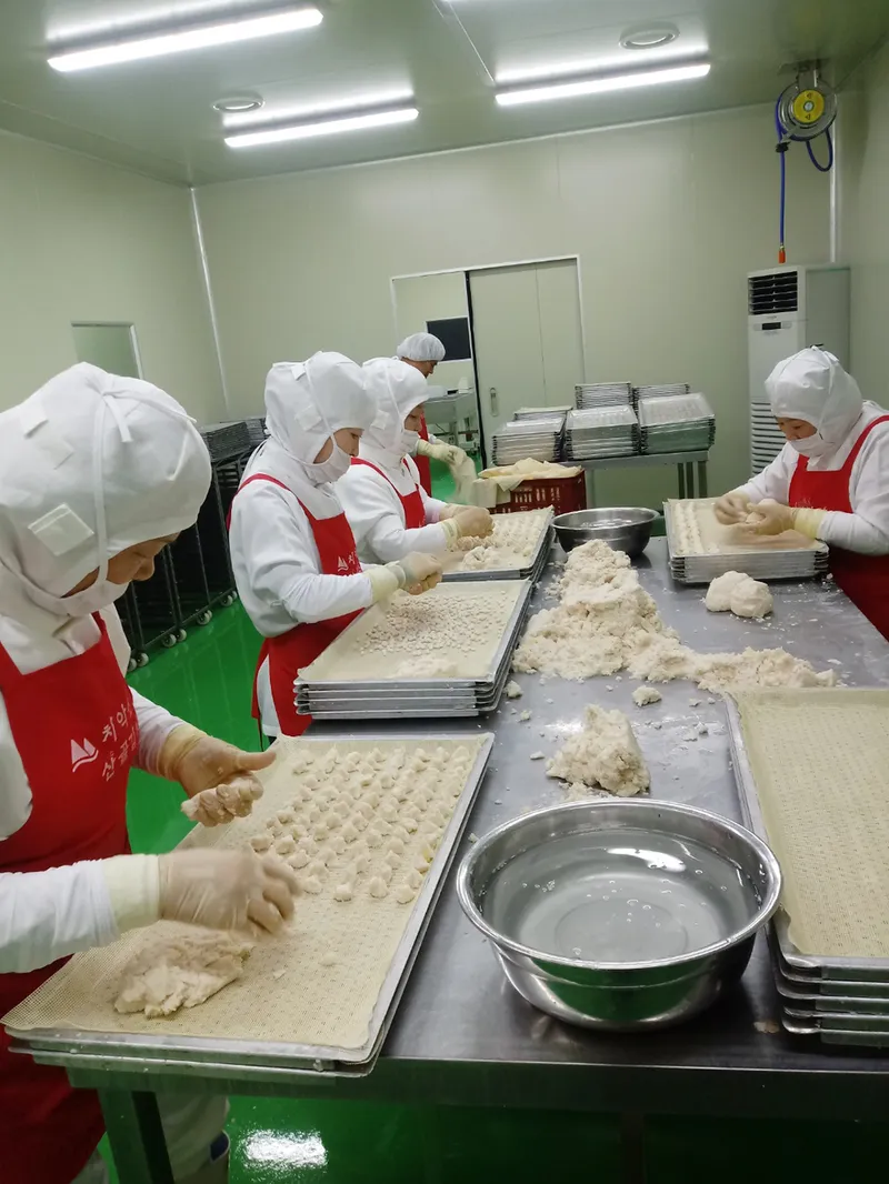 공장에서 대량으로 만든 감자옹심이가 아닙니다. 집에서 직접 만든 것처럼 손으로 하나하나 빚어 쫄깃한 식감이 더 살아있습니다.