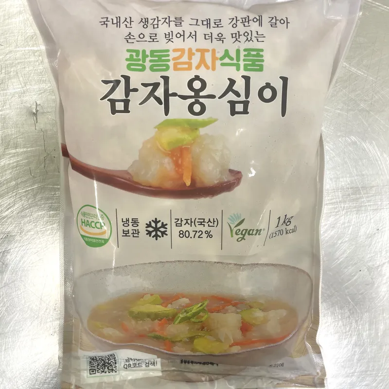 시중에서 사다가 먹어 본 옹심이 중에서는 설명 대로 대량생산에 의한 옹시이가 아니고 수제로 제작한 옹시이라는게 느껴집니다. 겉이 투박하고 쫀득하게 씹히는 시캄과 감자 특유의 향이 살아있어 맛있게 먹었어요. 추가 구매 의향 있어요.