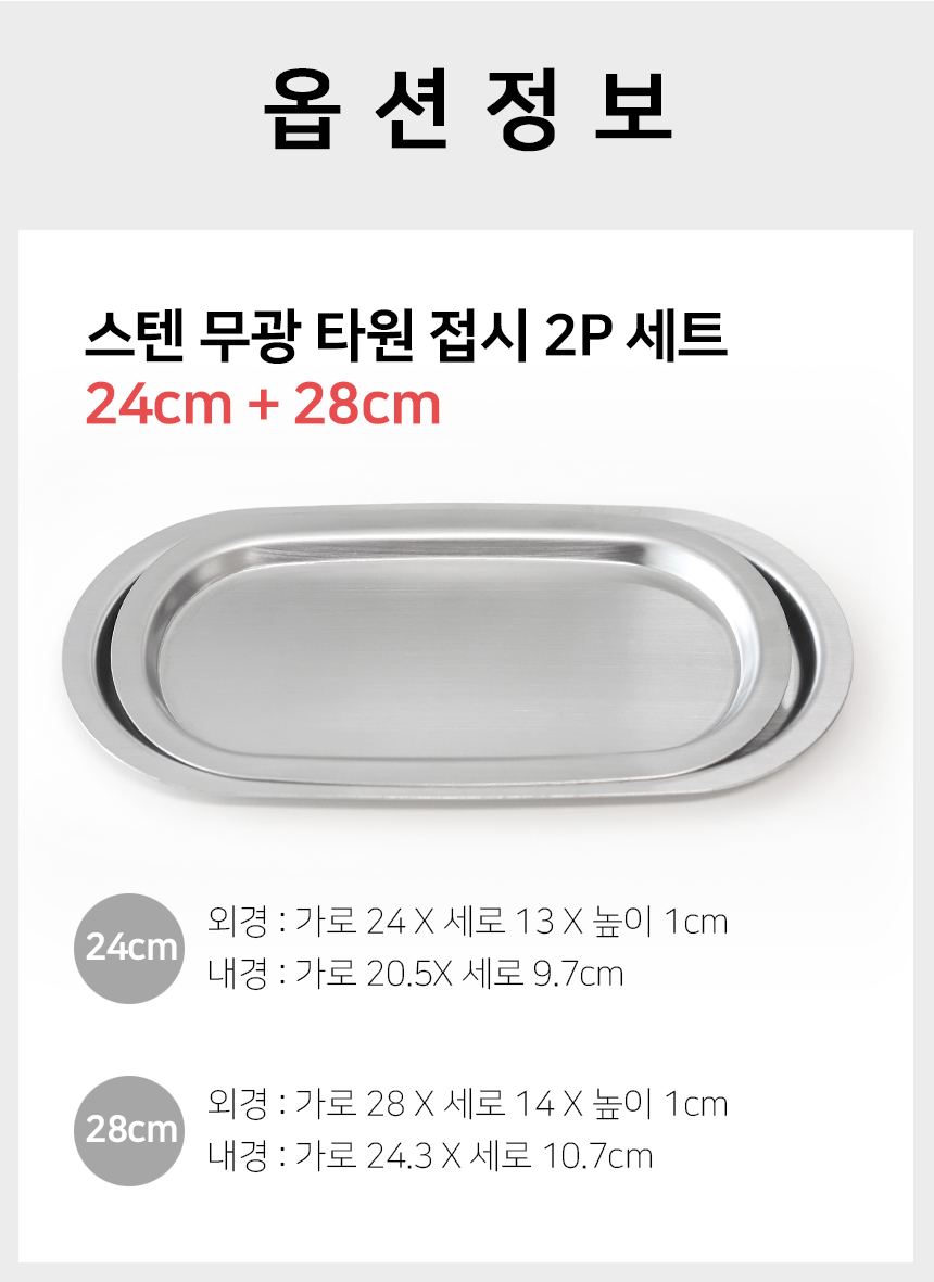 포스코 생산 최고급 스텐 무광 타원접시 2종세트 (24cm+28cm) 트레이 플레이트