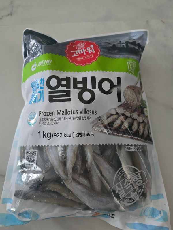 일식집에서 한번씩 먹는 시사모(열빙어)가 맛있어서 집에서 한번 해볼까 싶었네요. 1키로가 제법 많아요. 편하게 에어프라이어 돌렸는데 너무 오래했나봐요. 뻣뻣해져서 꼭꼭 씹어 먹었네요. 후라이팬에 구워봐야 겠어요. 근데 작은것까지 알이 들어 있네요. 싱싱한가봐요 비리지 않고 고소하니 맛있어요