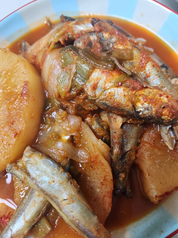 시중에 파는 갈치조림양념장으로 무 넣고 해먹었어요. 알이 꽉 차있고 맛있습니다!