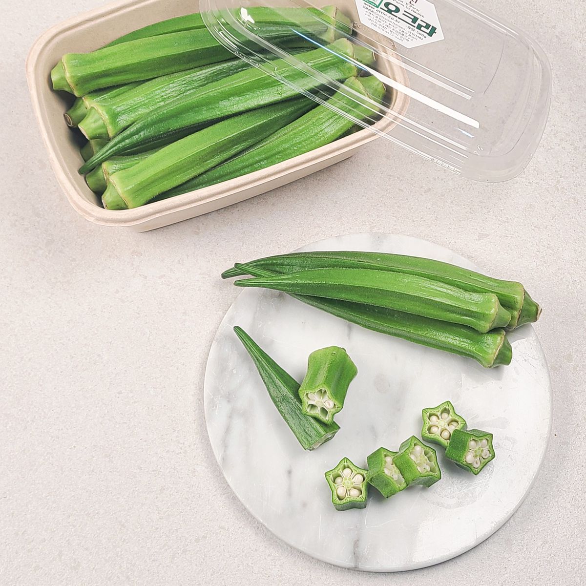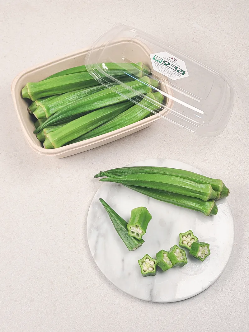 파프리카처럼 아삭아삭한 식감에 옥수수처럼 톡! 터치는 씨! 씹으면 은은하게 꽃향기가 나는 유기농 생오크라입니다. 오크라는 얇고 부드러운 껍질과 조리에 따라 달라지는 식감이 특징이에요😊 달큼하고 은은한 맛으로 아삭하게! 생으로 샐러드에 넣거나, 살짝 데쳐 활용하셔도 좋아요.