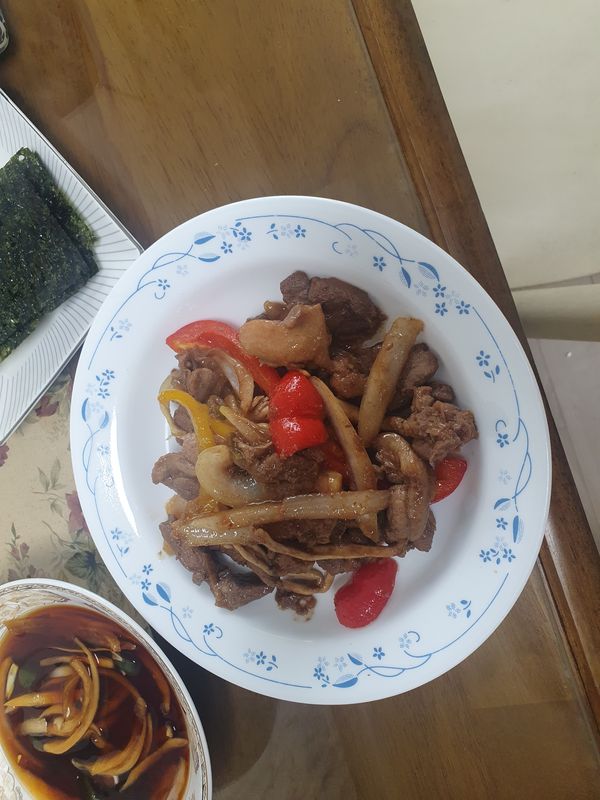 저는 불고기고기 양념하듯 하루정도 재섰다가 먹을때 야채랑 버섯넣고 볶아서 먹었는데 딸이 맛있다네요 오리 냄새도 안 낫었어요