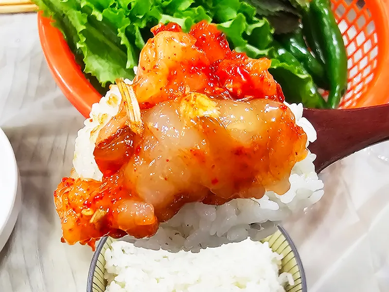 입맛 돋우는 매콤달콤 양념게장! 전통 비법이 담긴 특제 양념 소스는 자극적이지 않은 깔끔한 매운맛입니다. 저희만의 비법을 듬뿍 담아 만든 양념에 결이 살아있는 게살과 내장의 고소함이 어우러진 그 깊은 맛을 느껴 보세요.