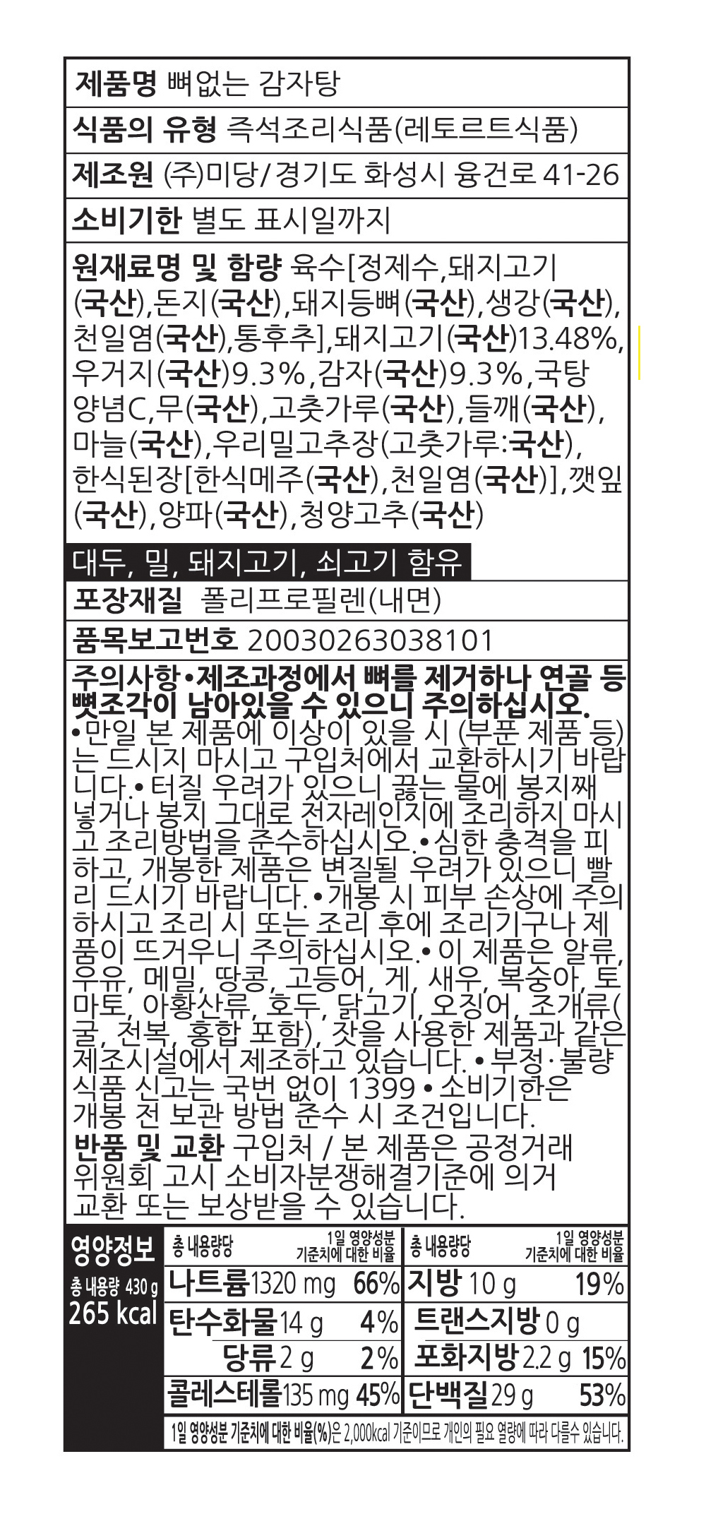 [G] 미당 뼈없는 감자탕 430g x 5팩